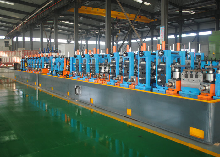 Laminador de tubos de soldadura de costura recta de alta frecuencia para la producción de tubos de precisión con diámetros de 25-76 mm. Cuenta con control PLC y maneja materiales de acero de bajo carbono, HRC, CRC y acero galvanizado.