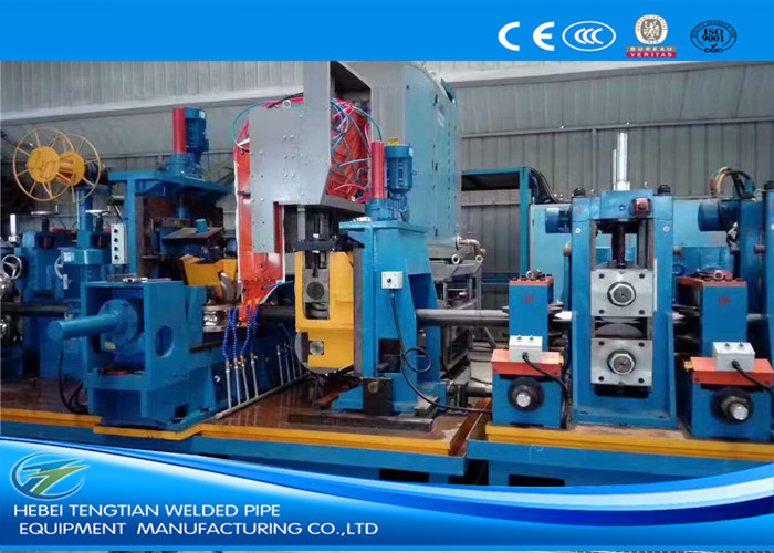 La línea de fabricación de tubos soldados de alta frecuencia está diseñada para producir tubos redondos con diámetros de 38-114 mm y espesores de pared de 1.2-5.0 mm. Esta línea de producción utiliza la conformación por laminación para procesar la cinta de acero en varias formas, utilizando el calentamiento por inducción de alta frecuencia para crear material seccional de varios diámetros y tamaños al comprimir las costuras de soldadura juntas en formas cerradas.